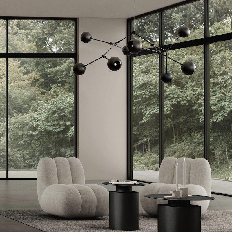 Drop Chandelier Globe imponerar inte bara med sitt uttryck, utan även med sin mångsidighet. De 14 justerbara metallarmarna gör det möjligt att anpassa lampan helt efter egna önskemål och kreativa visioner. Oavsett om du väljer en symmetrisk uppställning för ett harmoniskt intryck eller en asymmetrisk form för mer dynamik, är möjligheterna till personligt uttryck nästintill oändliga.