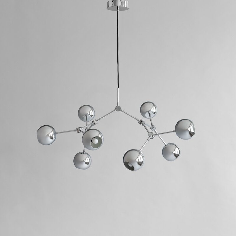 Drop Chandelier Globe imponerar inte bara med sitt uttryck, utan även med sin mångsidighet. De 14 justerbara metallarmarna gör det möjligt att anpassa lampan helt efter egna önskemål och kreativa visioner. Oavsett om du väljer en symmetrisk uppställning för ett harmoniskt intryck eller en asymmetrisk form för mer dynamik, är möjligheterna till personligt uttryck nästintill oändliga.