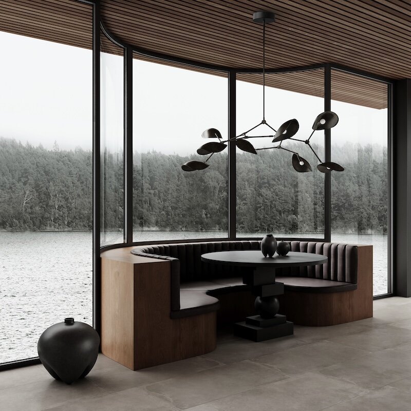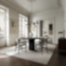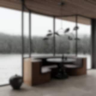 Upphängd i en justerbar arm svävar lampskärmen i perfekt balans, motviktad av en elegant sfär – ett konstnärligt uttryck för kontrast, jämvikt och viktlöshet. Resultatet är en design som kombinerar rörelse och stillhet, där ljuset får en närmast levande närvaro i rummet.