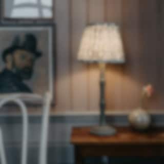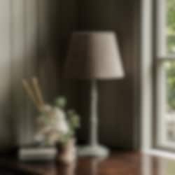 En klassisk bordlampfot av svarvat trä. Handmålad med en halvmatt färg där penseldragen är synliga för en gedigen känsla. Kombinera med någon av våra lampskärmar.