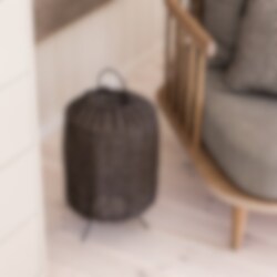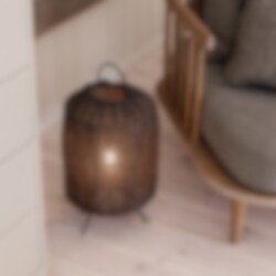 En lättplacerad lampa som fungerar lika bra som bordslampa som golvlampa. Den flexibla utformningen gör den enkel att anpassa efter olika rum och behov. Tyget är melerat i två färgtoner, vilket ger ett levande och mjukt uttryck. Trots att materialet är något kraftigare har det ett fint ljusgenomsläpp som skapar en behaglig och stämningsfull belysning.