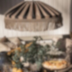 Skärmtyget och fransen är tillverkade i material av högsta kvalitet, speciellt utvalda för att klara det nordiska sommarvädret. De är vattenavvisande, UV-beständiga och har utmärkt färgbeständighet - vilket innebär att de behåller sin färg och form även i starkt solljus.
