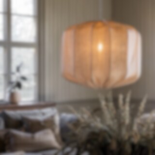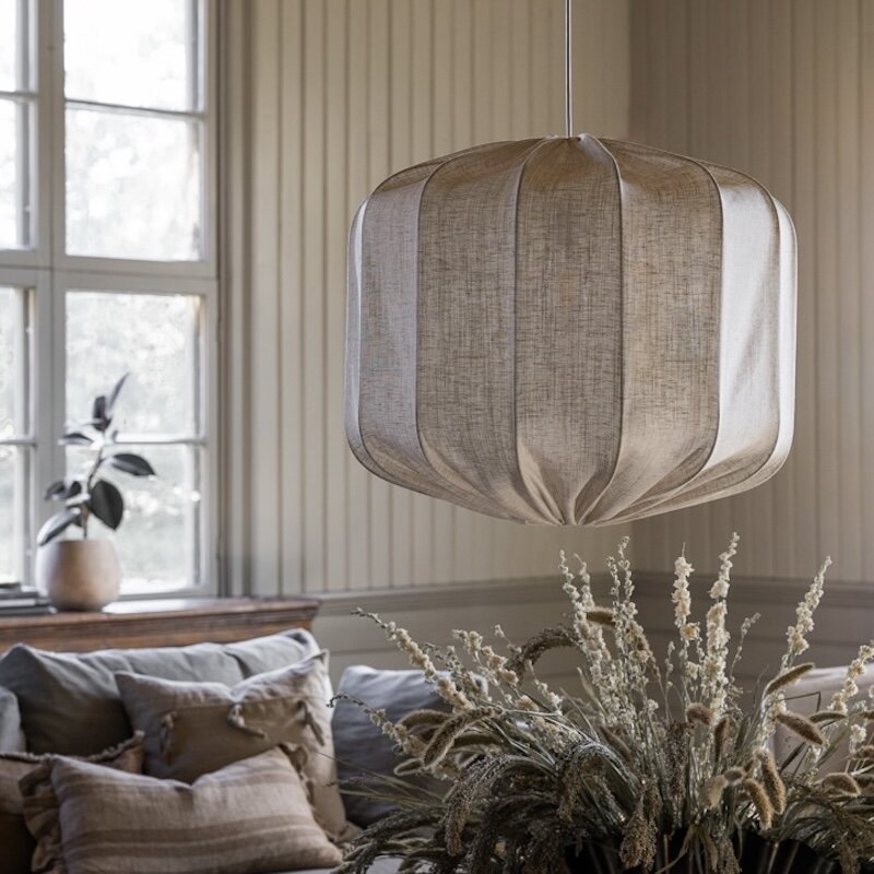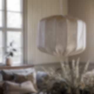 Lampskärmen Dester har en textil struktur som ger ett mjukt och behagligt ljus. Tygets yta skapar en levande ljusbild när lampan är tänd och tillför samtidigt rummet en ombonad känsla även när den är släckt. Skärmen passar utmärkt över ett matbord eller soffbord, men fungerar lika fint som solitär – exempelvis i en trappa där den får ta plats och skapa ett tydligt uttryck. Hope kan även kombineras med golvlampfoten James, vilket gör den till ett flexibelt val i olika miljöer.