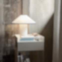Colette-lampan har en dimmerfunktion för full kontroll över ljusintensiteten. Den klassiska tyglampan kommer med ett par vita handskar för att hålla den ömtåliga textilen i perfekt skick under uppackning och montering.