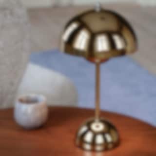Den portabla modellen VP9 i mässing är något lättare och mindre i storlek än den vanliga bordslampan. Den är utrustad med en USB-laddningskabel och finns i ett brett utbud av härliga färger som skapar en spännande atmosfär i inomhusmiljöer. Laddningstiden är 8 timmar för full laddning och batteriet kan bytas ut. Lampan har tre ljusstyrkor, 100%, 50% och 20%, batteritid vid 100% är 10 timmar.
