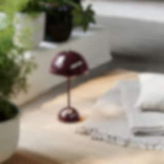 Den portabla modellen VP9 är något lättare och mindre i storlek än den vanliga bordslampan. Den är utrustad med en USB-laddningskabel och finns i ett brett utbud av härliga färger som skapar en spännande atmosfär i inomhus- och utomhusmiljöer. Den plommonröda kulören känns rätt i tiden och är ny för 2023. Laddningstiden är 8 timmar för full laddning och batteriet kan bytas ut. Lampan har tre ljusstyrkor, 100%, 50% och 20%, batteritid vid 100% är 10 timmar.