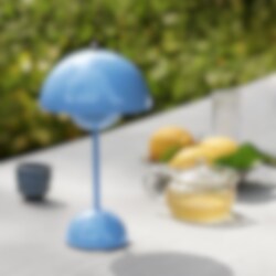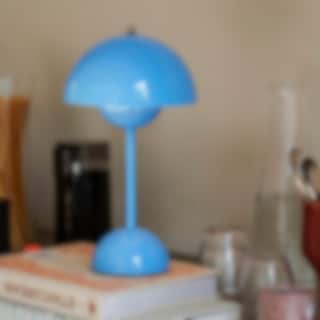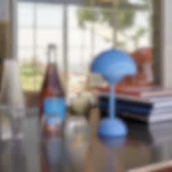 Den portabla modellen VP9 är något lättare och mindre i storlek än den vanliga bordslampan. Den är utrustad med en USB-laddningskabel och finns i ett brett utbud av härliga färger som skapar en spännande atmosfär i inomhus- och utomhusmiljöer. Kulören swim blue känns rätt i tiden och är ny för 2023. Laddningstiden är 8 timmar för full laddning och batteriet kan bytas ut. Lampan har tre ljusstyrkor, 100%, 50% och 20%, batteritid vid 100% är 10 timmar.