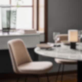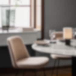 Se till att stämningen är rätt med Manhattan SC52, en bärbar bordslampa från Space Copenhagen. Den industriellt inspirerade basen är tillverkad av anodiserad aluminium med en krämfärgad skärm. Denna batteridrivna lampa lyser i nio timmar med högsta inställning, med ett extra batterialternativ som möjliggör ytterligare drift. Lampan har tre ljusstyrkor, 100%, 70% och 40%, batteritid vid 100% är 11 timmar.