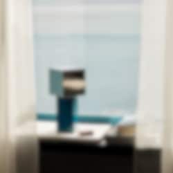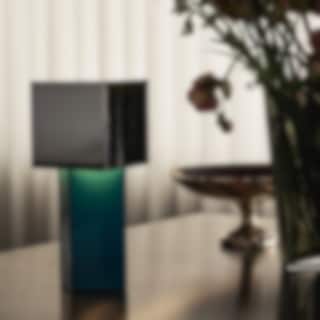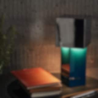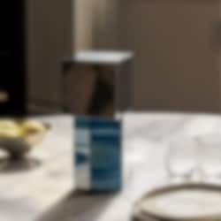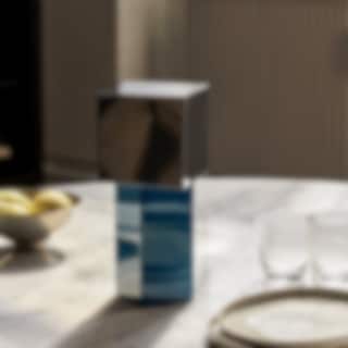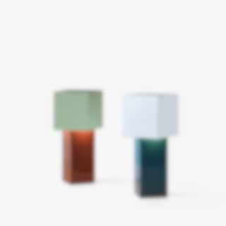 Form och ljus möts i den bärbara Pivot-lampan. Lampans geometriska skärm är placerad i en 45-graders vinkel mot basen, vilket skapar en mjuk spridning som efterliknar den varma glöden från ett ljus.