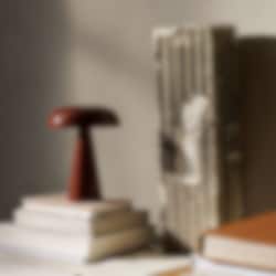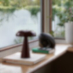 Höj stämning med Como SC53, en bärbar bordslampa från Space Copenhagen. Tillverkad av anodiserad aluminium, Comos robusta bas smalnar av upp mot en mjukböjd svampformar skärm som sprider ett fint varmt ljus i inomhus- och utomhusmiljöer. Lampan har tre ljusstyrkor, 100%, 70% och 40%, batteritid vid 100% är 11 timmar.