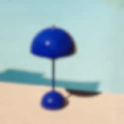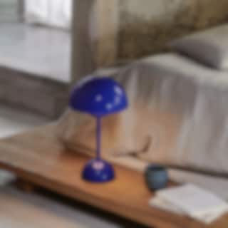 Den portabla modellen VP9 är något lättare och mindre i storlek än den vanliga bordslampan. Den är utrustad med en USB-laddningskabel och finns i ett brett utbud av härliga färger som skapar en spännande atmosfär i inomhus- och utomhusmiljöer. Den djärva koboltblå kulören är ny för 2023 och är en omtyckt accentfärg inom inredning. Laddningstiden är 8 timmar för full laddning och batteriet kan bytas ut. Lampan har tre ljusstyrkor, 100%, 50% och 20%, batteritid vid 100% är 10 timmar.