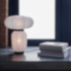 Design: Jaime Hayon 2018. Väst möter öst i formgivaren Jamie Hayons tolkning av den klassiska rislampan. De vackra lamporna görs för hand och är i elfenbensvitt rispapper med detaljer av svartbetsad ask. Formakami har två ljuskällor - en i den övre delen och en i den nedre delen som skapar ett fint varm sken.