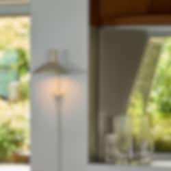 Tripod HM12 vägglampa är inspirerad av skisser av originallampan av Hvidt & Mølgaard. Lampan är tillverkad av lackerad aluminium och förankrad av en sfärisk bas som skapar en visuellt solid grund, medan skärmens vridningsfunktion gör att lampan kan distribuera en generös ljusspridning. Den nya färgsättingen - vit med mässingsdetaljer, illustrerar det tidlösa tilltalandet av en klassisk design.