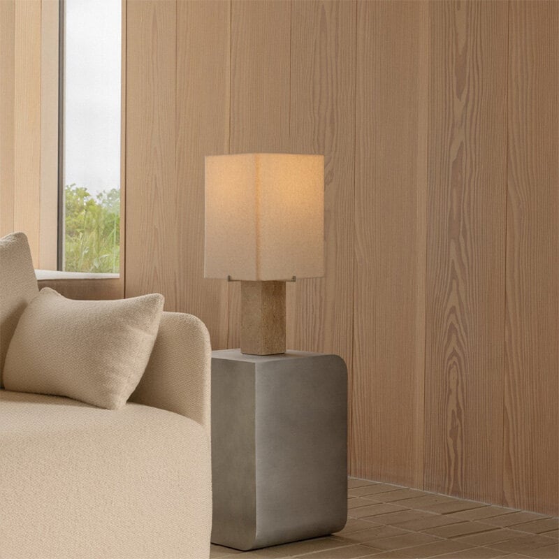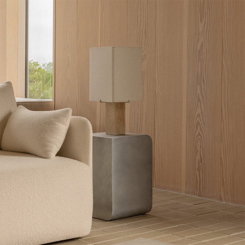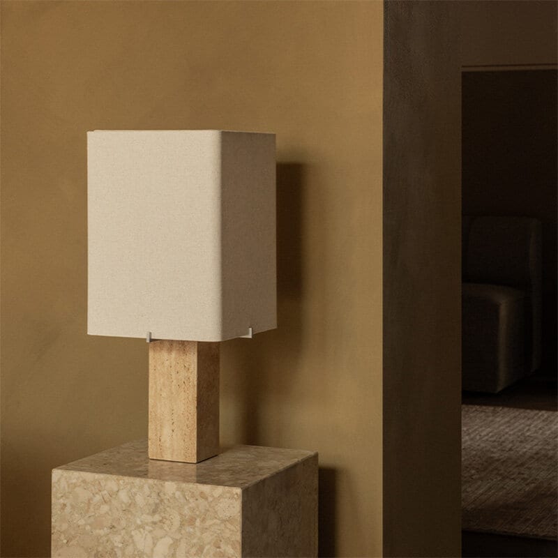 Design: Kroyer-Saetter-Lassen. Nonna bordslampa i travertin förenar skulptural närvaro med nedtonad elegans – en modern men samtidigt tidlös tolkning av klassisk design. Lampans varma travertinbas kombineras med en sandfärgad textilskärm som sprider ett mjukt, stämningsfullt ljus och skapar en känsla av lugn och harmoni.