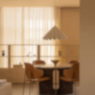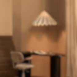 Design är en konst att berätta enligt den Köpenhamnsbaserade designduon, och deras Dancing Pendant för Audo Copenhagen omsätter den principen i praktiken. Utsökt, men med en lekfull twist, tar den uttrycksfulla statement-lampan sina designsignaler från en dansares plisserade kjol som fångas upp i mitten av virveln - en idé som växer och finner sin slutliga form, exakt och välordnad men ändå mjuk och flytande. Den hållbara lampan är tillverkad i taktil polyesterfilt, ett återvinningsbart material tillverkat av använda plastflaskor. Denna mindre variant av Dancing med en diamater på 65 cm har ett ännu större användningsområde och passar som kökslampa, hallampa, sovrumslampa och givetvis vardagsrumslampa.