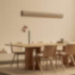 Designad för att tillföra lugn och sofistikering till ett utrymme, perfekt över ett matbord eller skrivbord, omdefinierar Hashira Linear Pendant Lamp den populära belysningskollektionen med sin horisontella form, och levererar omgivande belysning i en minimalistisk estetik. Den strömlinjeformade lampan ser ut att sväva på luft, upphängd i taket av trådar och dess råa linneskärm som hålls på plats av magneter, vilket eliminerar behovet av skrymmande skruvar. Den dimbara, utbytbara LED-ljuskällan avger ett varmt sken, tillräckligt starkt för uppgifter men ändå subtilt nog för att skapa stämning.