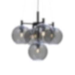 Takkronan är en del i Belids klassiska serie Gloria. Här har Gloria svartstruktur med fem kupor i rökfärgat glas. Den är designad för snygga filamentglödlampor och ljuset visas på ett vackert och dekorativt sätt. För fast installation.