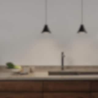 Lampan är designad med en genomtänkt balans mellan aluminiumringar, en trycksvarvad kon och ett opalt bländskydd, vilket skapar en sammanhängande helhet och en känsla av tyngd. Den dolda LED-ljuskällan är dimbar och ger ett behagligt, jämnt ljus utan att blända.