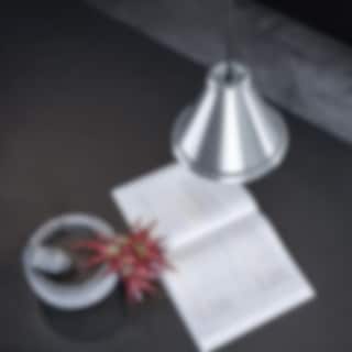 Lampan är designad med en genomtänkt balans mellan aluminiumringar, en trycksvarvad kon och ett opalt bländskydd, vilket skapar en sammanhängande helhet och en känsla av tyngd. Den dolda LED-ljuskällan är dimbar och ger ett behagligt, jämnt ljus utan att blända.