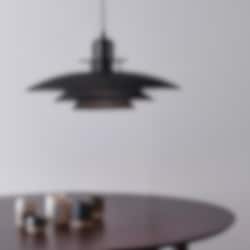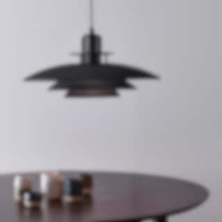 Primus I Ø43 taklampa svart är en 80-talsklassiker som fortsätter att lysa upp matbord än i dag. Genom tiden och de olika trender som passerat har färgerna varierat. Anpassad för takkrok med textilsladd.