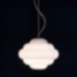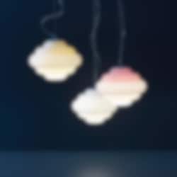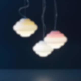 Diffus, designad av Kajsa Pettersson, är en takpendel i bockad aluminium som hålls samman av en läderknut och skapar ett fjäderlätt intryck. Diffus finns i flera färger och två storlekar.
