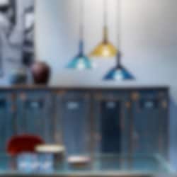 Tratten taklampa blå