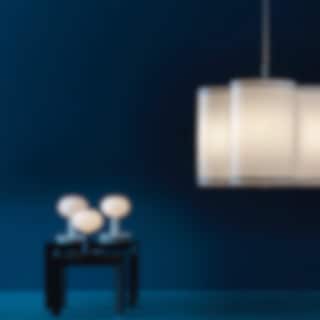 Diffus, designad av Kajsa Pettersson, är en takpendel i bockad aluminium som hålls samman av en läderknut och skapar ett fjäderlätt intryck. Diffus finns i flera färger och två storlekar.