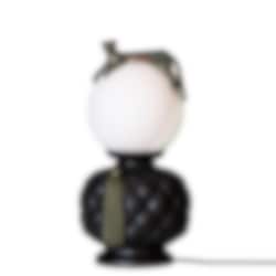 Upplev den förtrollande skönheten hos Viva La Diva, en bordslampa skapad av designern Lisa Bengtsson. Med en lampfot i elegant matt svart keramik, kombinerad med det opalvita glaset som kröns av en leopard i antik brons, är denna lampa ett mästerverk. Den gröna tofsen lägger till en lekfull touch, vilket gör varje rum levande. Med sina mått på 45 cm i höjd och 23 cm i bredd blir Viva La Diva en imponerande inredningsdetalj.