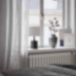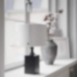 Woody bordslampa förenar enkelhet och funktionalitet med en stilren estetik. Den svartmålade askfoten ger ett elegant och modernt uttryck, medan den vita linneskärmen skapar ett mjukt och behagligt ljus som bidrar till en avslappnad atmosfär.