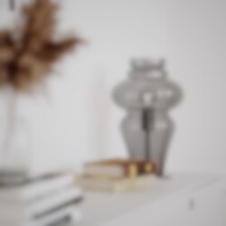 Bordslampan Dolores i glas är en förtrollande belysning som ger en elegant touch till din inredning. Lampan har en rund och kurvig design som lockar till sig uppmärksamhet. Dess glas ger en behaglig och mjuk spridning av ljuset, skapandes en varm och inbjudande atmosfär.