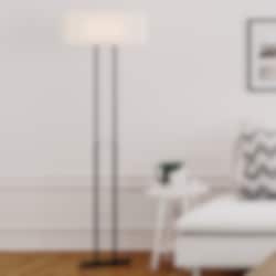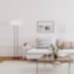 Den svartvita T-formade golvlampan Luton blir ett med din inredning oavsett i vilket rum den placeras. Foten i svart metall med det långa stativet gifter sig utmärkt med den rektangulära linneskärmen i vitt. Ställ den ensam i ett hörn, vid en fåtölj eller bredvid tv:n. Luton golvlampa smälter in fint i varje vrå