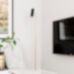 En mycket behändig och modern golvlampa med lång guldfärgad metallstomme och en cylinderformad lampskärm i vit eller svart matt färg - Puls golvlampa ingår i serien med samma namn och passar in i de flesta stilar. Den stadiga foten gör lampan stabil oavsett placering och med en ordentlig sladdlängd på 250 cm är lampan flyttbar till olika platser i rummet.
