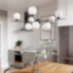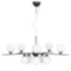 Punto taklampa i svart matt metall och vita matta glaskupor ger ett modernt och stilenligt intryck. Här möts runda former och raka linjer i en högst charmig konstellation. Trots att Punto taklampa är relativt enkel och avskalad i sin grunddesign, bidrar de vita glaskuporna och taklampans storlek till att ge lampan en säregen look som andas livfullhet och glädje. Låt denna iögonfallande taklampa bli som pricken över i vad gäller ditt soffbord, matsalsbord eller köksbord.