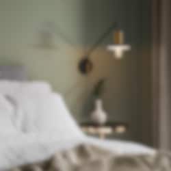 Med Quinn vägglampa får du en trendsäker inredningsdetalj som såväl sparar utrymme och som ger ditt hem eller kontor en detalj som sticker ut från väggen! By Rydéns designers har tagit hänsyn till att man i många hem vill spara ytor och istället utnyttja väggarna för att låta lampor bli en del av inredningen. Quinn vägglampa passar i de flesta rum, särskilt om du har en inredning som grundar sig i den grafiska stilen. Matt svart och matt mässing är dessutom en populär och stilsäker kombination just nu.