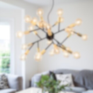 En fantastisk lampa som ger karaktär och stil till ett rum. Med sina 24st ljuskällor på lika många armar får man ett bra ljus. Lampan är mattsvart och har mässings detaljer. Vi rekommenderar anslutning till en väggdimmer..