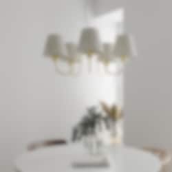 Taklampan Lynx är en tidlös och elegant taklampa som förhöjer varje rum med sitt klassiska uttryck. Den finns i krom eller mässing och sprider ett varmt, behagligt ljus genom de textila lampskärmarna, vilket skapar en inbjudande och mysig atmosfär. Den svarta textilsladden kompletterar lampans stilrena design och ger ett sofistikerat intryck. Med en imponerande diameter på 75 cm blir Lynx en dekorativ och iögonfallande detalj som fungerar lika bra i vardagsrummet, hallen eller matsalen.