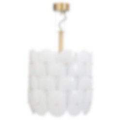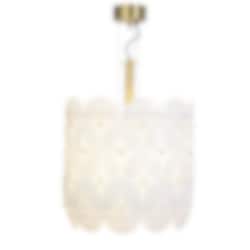 Lampskärmen i opalvitt glas sprider ett mjukt och behagligt sken som skapar en varm och inbjudande atmosfär. De sofistikerade mässingsdetaljerna tillför en lyxig känsla, medan de tvinnade textilkablarna i harmoniska nyanser kombinerar estetik med funktion.