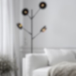 Med Turno golvlampa i klassisk svart metall har du möjlighet att ställa in ljuskällorna efter tycke och smak. Då Turno golvlampa inte har någon baksida, kan du välja om du vill att ljuskällorna, som ryms i ett rör av frostat glas, ska vara i fokus eller om du föredrar dem dolda och på så sätt stråla ut på sidorna bakom den guldfärgade metallskivan. På grund av golvlampans olika utföranden, fyller Turno en funktion i de flesta utrymmen i ditt hem. Har du kanske hittat din nya hallampa, vardagsrumslampa eller sovrumslampa? Turno golvlampa tål att visas upp, men är samtidigt på grund av sin slimmade design perfekt att placera i lite trängre utrymmen. Kanske som extra ljuskälla i ett hörn i vardagsrummet, eller som en snygg detalj i barnrummet eller tonårsrummet? Oavsett var Turno golvlampa hamnar i ditt hem, kommer du kunna glädjas av lampan under lång tid framöver.