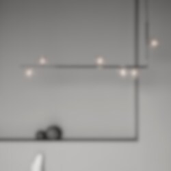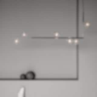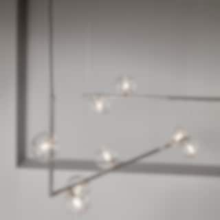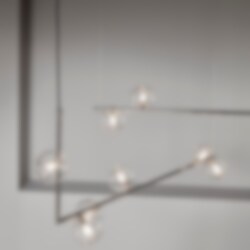 Air har formats så att sex glasglober kopplats till ett vinkelrör i nickel med olika mellanrum. Ett strikt och stram form och ett luftigt intryck gör att Air73 är den perfekta belysningen över matbordet.