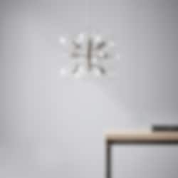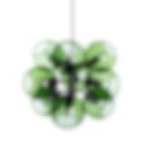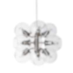 Taklampa i lackad metall med klara glasglober från Pholc. Med de vackra glaskuporna sprider armaturen ett fint ljus i rummet. Vi rekommenderar att installera dimmer till lampan vilket  gör att den får ett större användningsområde. Vid full effekt får man ett starkt, funktionellt ljus och vid låg effekt ett fantastiskt fint glödande sken.