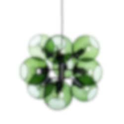Taklampa i lackad metall med gröna glasglober från Pholc. Med de vackra glaskuporna sprider armaturen ett vackert ljus i rummet. Vi rekommenderar att installera dimmer till lampan vilket gör att den får ett större användningsområde. Vid full effekt får man ett starkt, funktionellt ljus och vid låg effekt ett fantastiskt fint glödande sken.