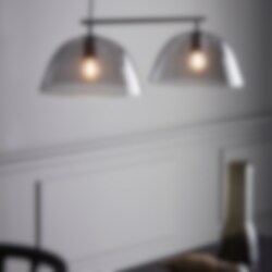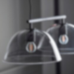 Med sina rökta glas ger Wendo ett sprakande varmt och mjukt sken. Lampan passar utmärkt över rektangulära matbord där den ger ett bra ljus samtidigt som den skapar karaktär i rummet.