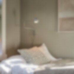 En tidlös design formgiven av Monika Mulder, hennes strävar är att hitta smidiga lösningar som fyller verkliga behov utan att tumma på estetik till föremålet. Stommen av metall har ett strikt formspråk, som lättas upp när den möter det runda lamphuvudet med mässingsdetalj.