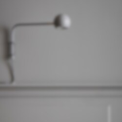 En tidlös design formgiven av Monika Mulder, hennes strävar är att hitta smidiga lösningar som fyller verkliga behov utan att tumma på estetik till föremålet. Stommen av metall har ett strikt formspråk, som lättas upp när den möter det runda lamphuvudet med mässingsdetalj.