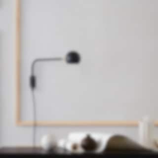 En tidlös design formgiven av Monika Mulder, hennes strävar är att hitta smidiga lösningar som fyller verkliga behov utan att tumma på estetik till föremålet. Stommen av metall har ett strikt formspråk, som lättas upp när den möter det runda lamphuvudet med mässingsdetalj.