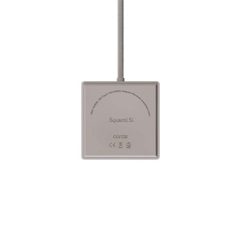 S1 grenuttag från Cords har en magnetisk infästning och en distinkt fyrkantig form. Den magnetiska lösningen gör det möjligt att fästa enheten under bordsskivor, på skrivbordsben eller andra metallytor där extra uttag behövs. En metallplatta ingår för flexibel placering på ytor som saknar metall.
