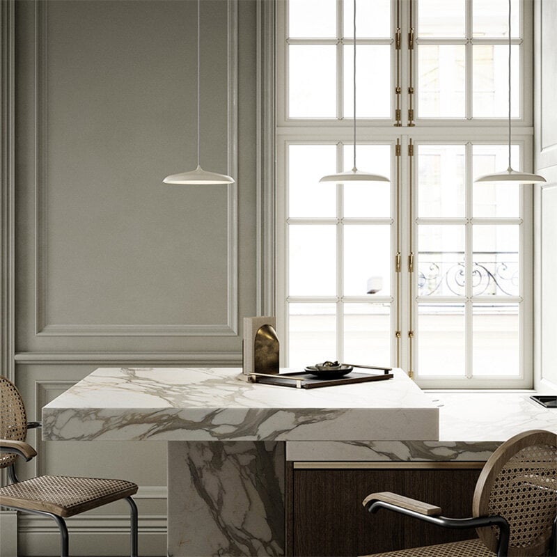 Artist taklampa är med sin tidlösa design och enkla, välbalanserade form en stark kandidat till att bli en framtida klassiker. Formen är inspirerad av musikens värld och för tankarna till en cymbal från ett trumset, vilket ger lampan ett elegant och grafiskt uttryck. Den slimmade silhuetten gör att den passar lika bra över matbordet som i vardagsrummet eller hallen. Artist finns i två olika storlekar för att enkelt kunna anpassas efter rummets proportioner.