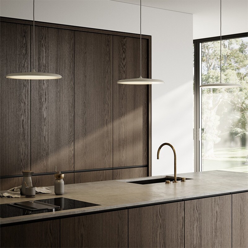 Artist taklampa är med sin tidlösa design och enkla, välbalanserade form en stark kandidat till att bli en framtida klassiker. Formen är inspirerad av musikens värld och för tankarna till en cymbal från ett trumset, vilket ger lampan ett elegant och grafiskt uttryck. Den slimmade silhuetten gör att den passar lika bra över matbordet som i vardagsrummet eller hallen. Artist finns i två olika storlekar för att enkelt kunna anpassas efter rummets proportioner.