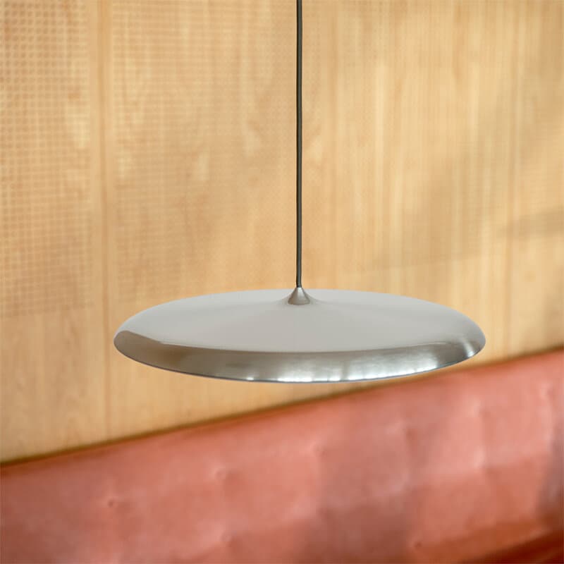 Artist taklampa är med sin tidlösa design och enkla, välbalanserade form en stark kandidat till att bli en framtida klassiker. Formen är inspirerad av musikens värld och för tankarna till en cymbal från ett trumset, vilket ger lampan ett elegant och grafiskt uttryck. Den slimmade silhuetten gör att den passar lika bra över matbordet som i vardagsrummet eller hallen. Artist finns i två olika storlekar för att enkelt kunna anpassas efter rummets proportioner.