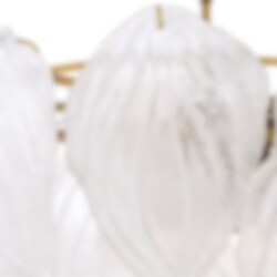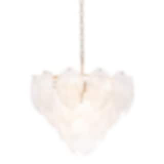 En serie handblåsta löv av frostat glas gör Novida ljuskrona till en fantastisk samlingspunkt i din heminredning. Denna inverterade takhängare ser fantastisk ut i ditt vardagsrum eller sovrum och kommer verkligen till liv när den är upplyst. Den innehåller 9 lamphållare och är upphängd på en kedja i antik mässingsfinish.